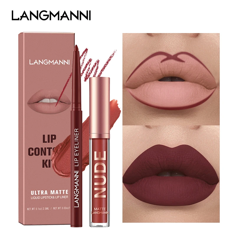 2pcs/set Lip Liner Pencil Nude Lip Gloss Combination Makeup ...