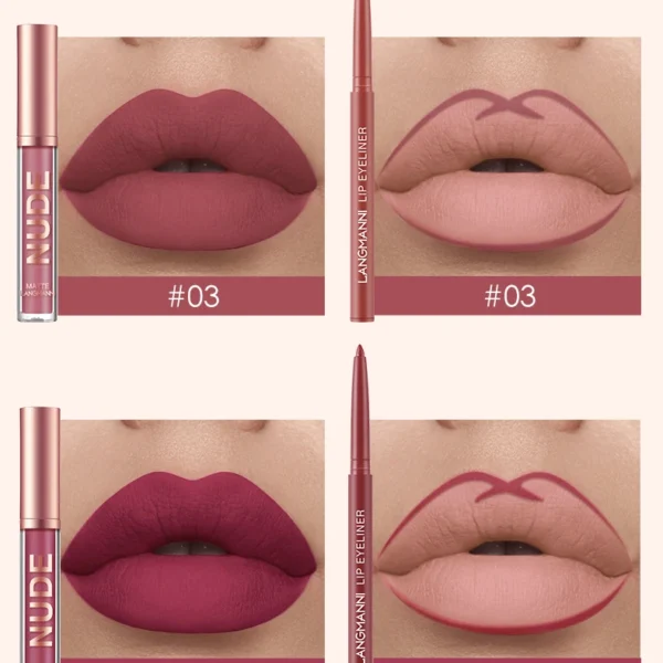 Lipstick and Lip Liner Combo Set of 2, Non-Transfer Matte Lipstick Set